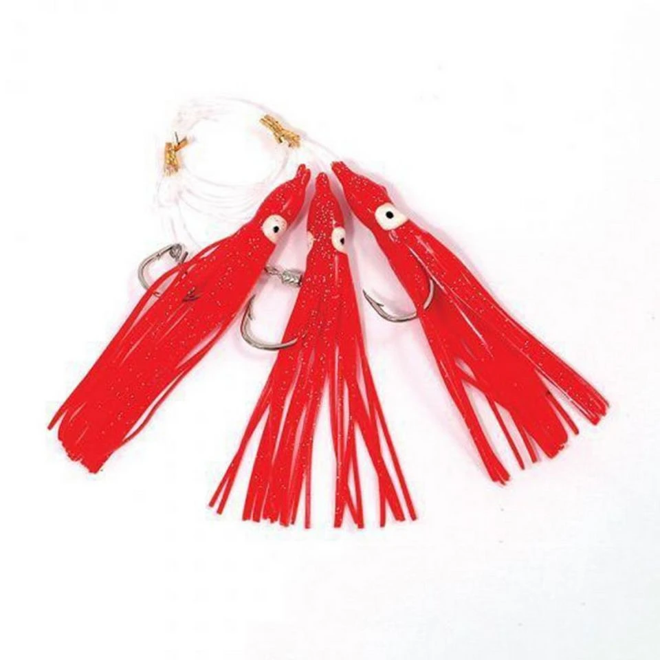 - Consists of large hooks with plastic squid shaped attractor attached
