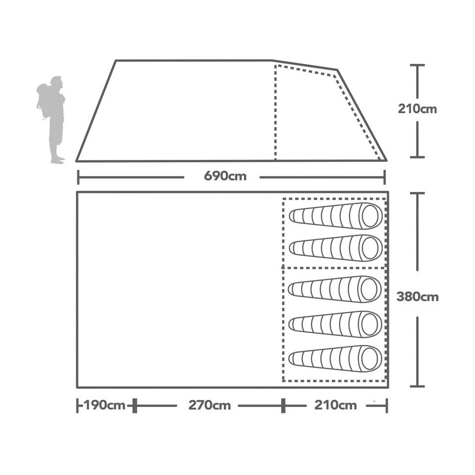 - Fully Sewn-in Groundsheet – Adds to the comfort of your tent by providing a bug and draught free environment. The groundsheet is attached to the flysheet with an external storm skirt to provide all-round protection